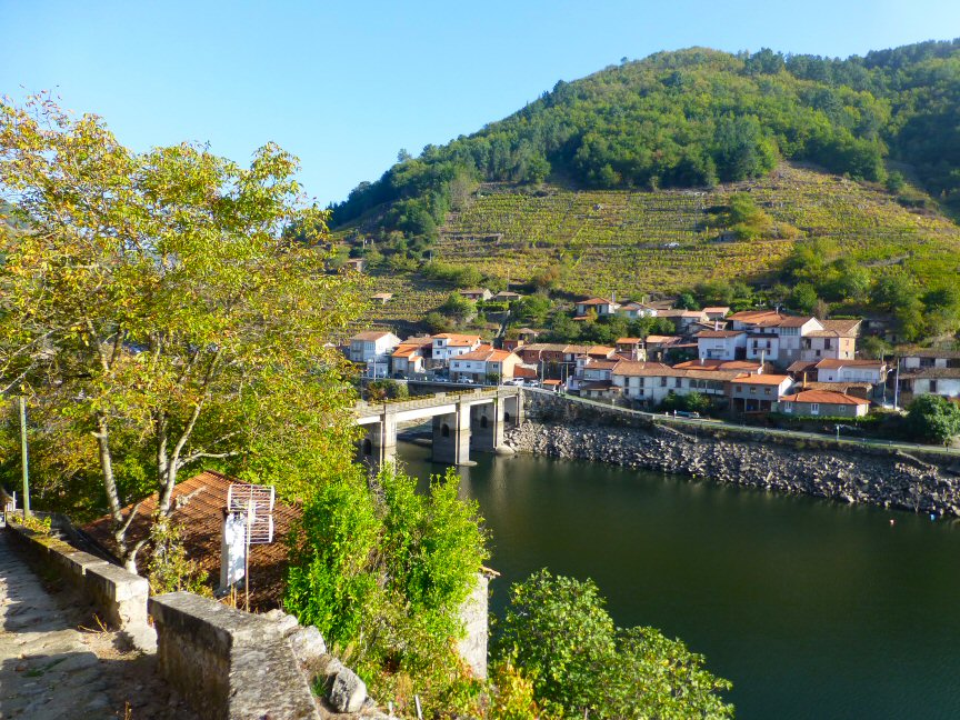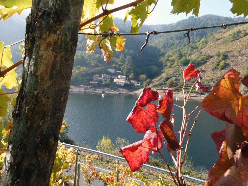 outra beira o pueblo de Pincelo; as viñas siguen a poñer unha cor con moitos matices.
