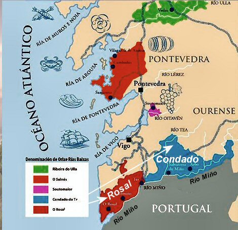 as mezclas, "coupage", de viño Albariño, a treixadura e a Loureira fan
