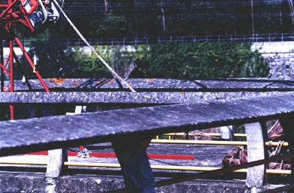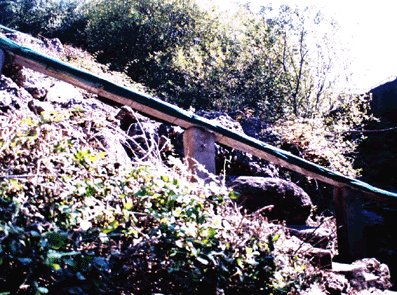 Fenosa aportou a súa tecnoloxía unha grua ( parte izquierda da foto ) e una red ( parte dereita) , hoxe figuran por riba do encoro como monumento a "defensa do medioambiente de Fenosa".