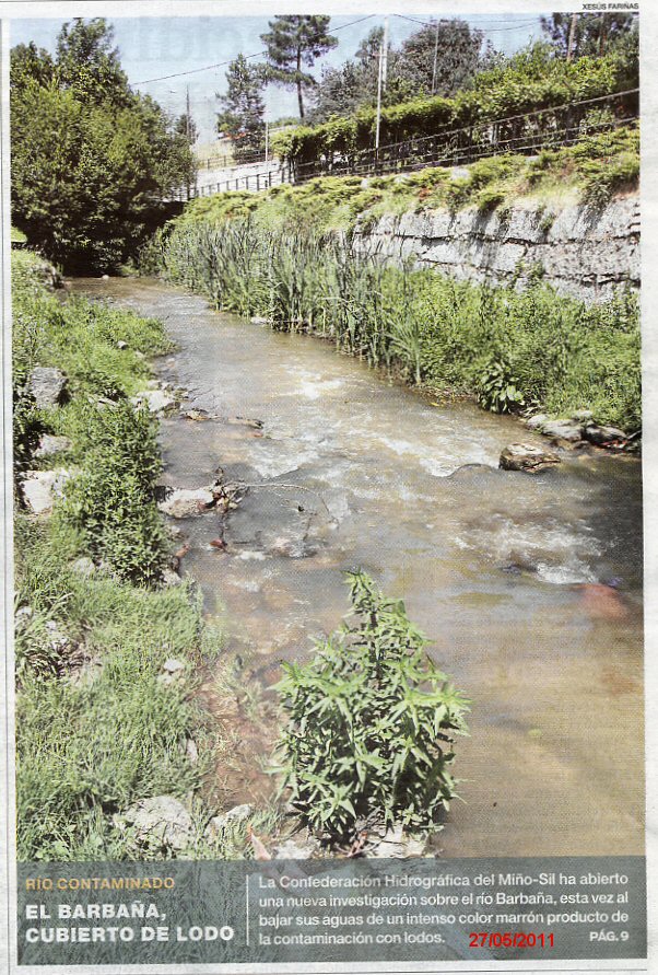 O final deste traballo, concretamente na nota 2: desastres nos ríos galegos tendes máis de 30 exemplos de desastres producidos este ano 2011, e o que vai do 2012, nos ríos de Galicia con miles de troitas e peixes mortos, e suma e sigue, por suposto documentados, non vaia ser, como sempre, que esta xente que hoxe nos goberna e que dice que xestiona o Medio Ambiente Galego, diga que "nunca os ríos estuveron mellor", frase que repiten cada dous por tres...¡Hai que ter cara!.