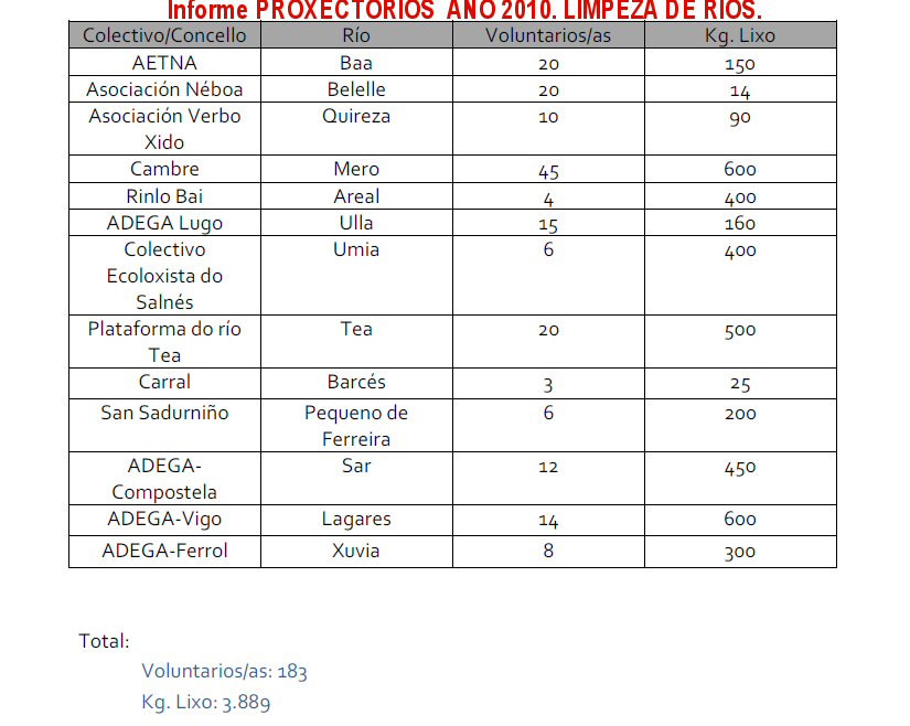 Ver o informe de Proxecto-ríos do ano 2010. Pulsar este link para ver o pdf.