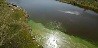 15.- Río Limia, encoro das Conchas totalmente eutrofizado e cheo de microcistina en agosto de 2011 Causas: a porquería que chega da Limia dende fai anos. Todo o mundo se lava as mans dende a Xunta de Galicia ata a Confederación. A auga está envelenada pola microcistina. Dende logo a culpa está na deficiente depuración de toda a comarca da Limia.