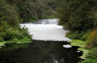 32.-Un novo vertido no río Barbaña o sábado 15/10/2011 deixa un regueiro de espuma blanca no canle deste río.