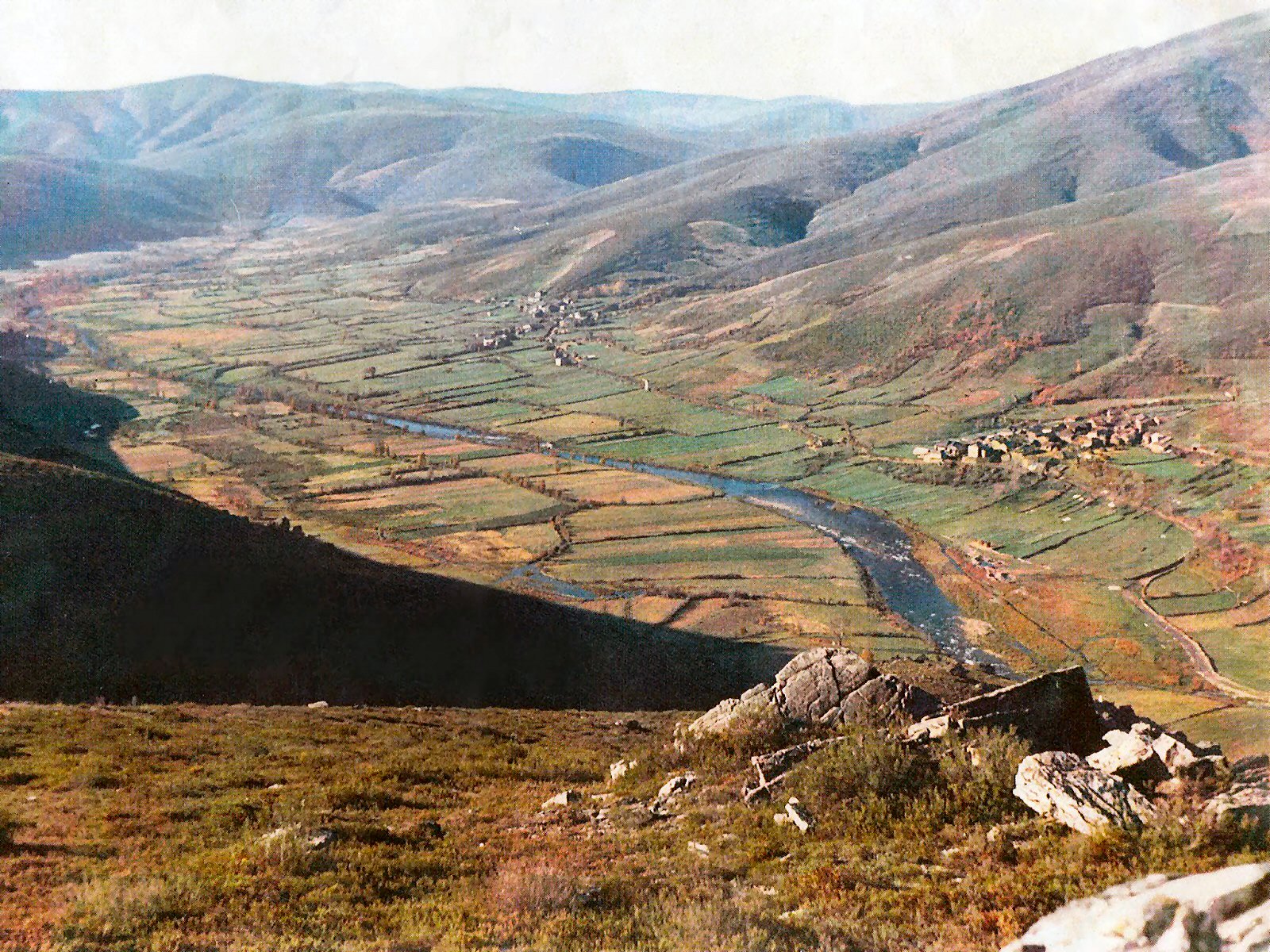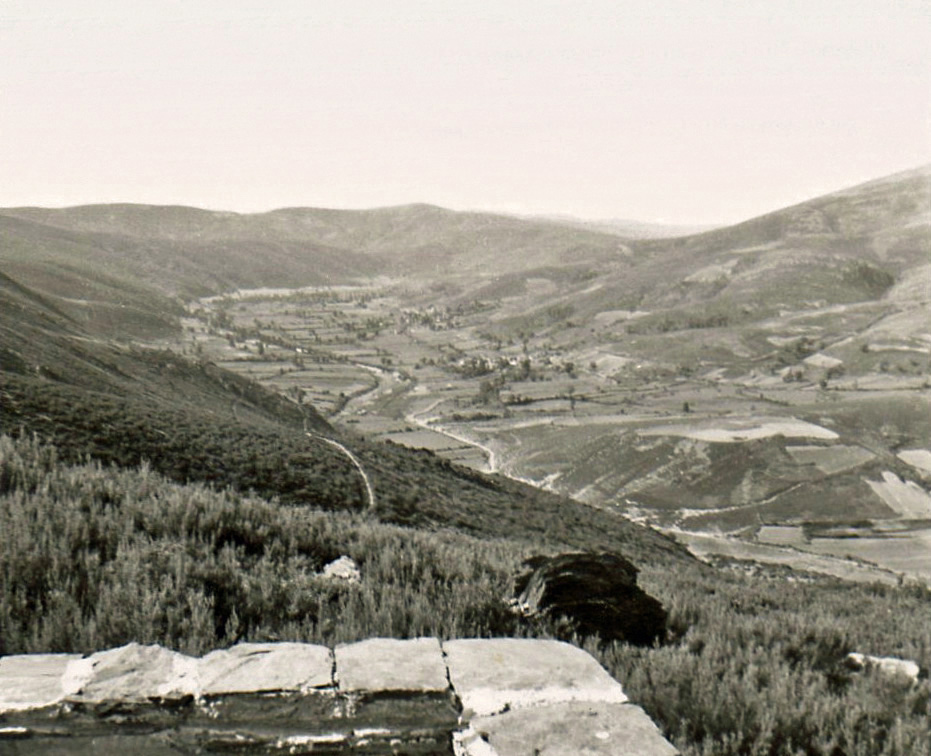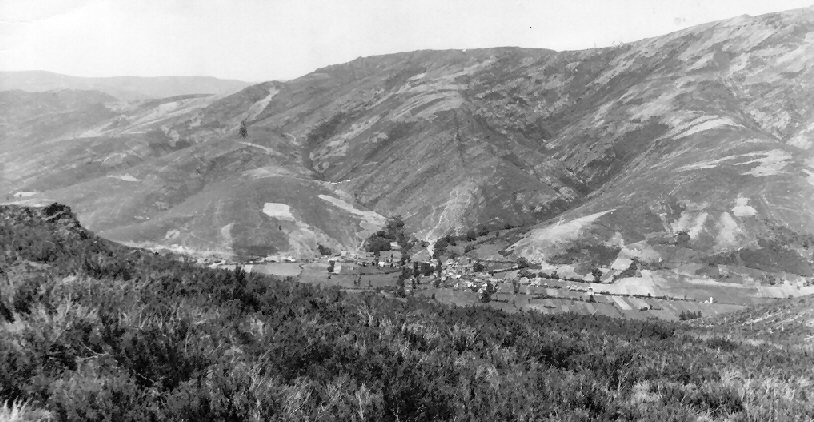 Val de Veiga de Camba desde el mirador que aún existe, por supuesto antes de hacer el embalse de As Portas. Se trata de una fotografía única e irrepetible. Está sacada del Blog sobre Veiga de Camba de Miguel López.