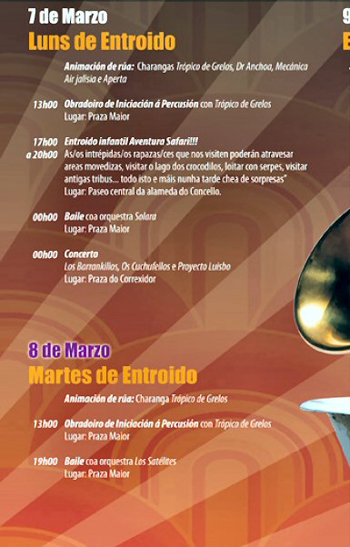 CALENDARIO DEL CARNAVAL. EN OURENSE CIUDAD.