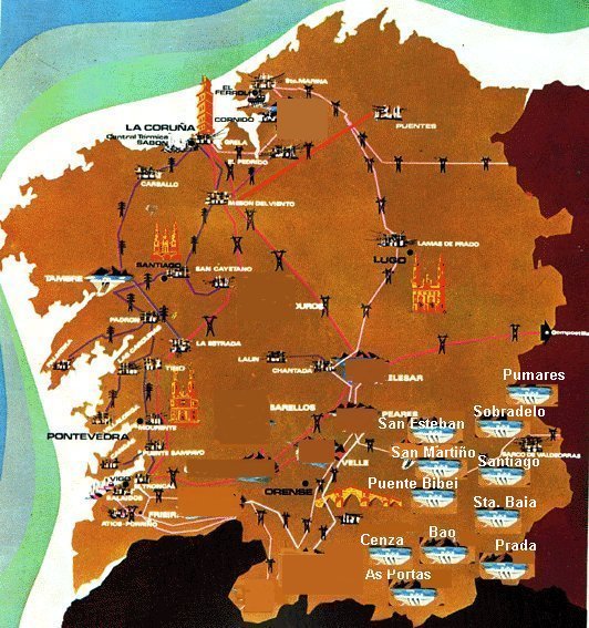 la propia presa: San Estebo, Peares, Belesar, Frieira y otros.