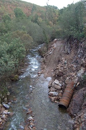 | Río Fragoso. Lobeira. Sensacional río de montaña. | En esta zona se está haciendo la minicentral. |
