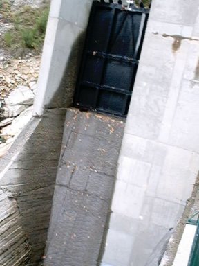 | Ver el caudal ecológico, prácticamente un grifo de agua. Por cierto es de una fuente situada a la derecha de la fotografía. | Por debajo el río no corre. Lógico. No hay río. Desde este punto hay aproximadamente 1 km. a la central. En este kilómetro el río está muerto. |