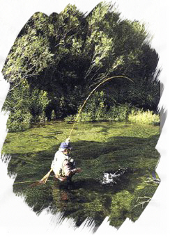 De súpeto, a altura do remansíño, un trallazo brutal tensa o fío, a tensión chega ó brazo e o corazón que comenza a traballar con aceleración. ¡ Ceo santo, o que aí ven!. O pescador xa non sabe, nin coñece, nin entende nada, sofre de amnesia total; o único que lle interesa neste mundo é sacar a troita das augas. Por fin pousa a preciosa pintona no verde esmeraldino do lameiro que aloumiña o río. ¡Que bonita é !. Pasa o tempo pero o pescador non lle saca ollo, está como aparvado. É o home máis feliz do planeta.
