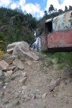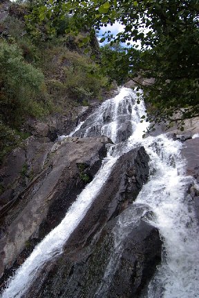 | Vista da Fervenza da Fareixa dende o pé da misma. É espectacular. Noutra provincia seguro que estaría máis cuidada. Nesta todo da igual, míranse soio o bolsillo. | En Ourense non sabemos o que temos. A Fervenza ten uns vinte metros. A zona está moi peligrosa e impresentable. Incluso ten arenas movidizas e hai que pedir permiso para pasar. |