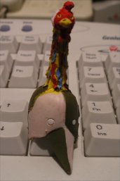 Sobre o casco érguese o pescozo que terá unha medida estándar e as cores das plumas as elixe o