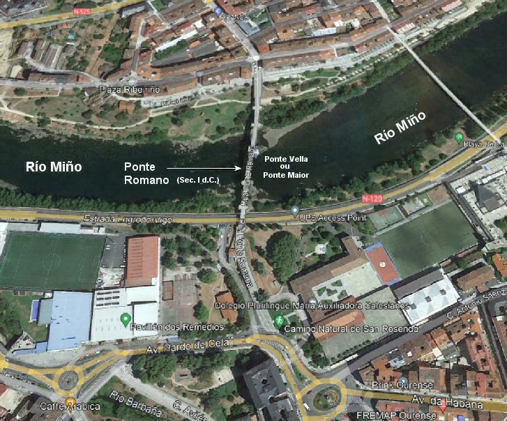 Mapa del Puente Romano-Medieval de Ourense. Puente