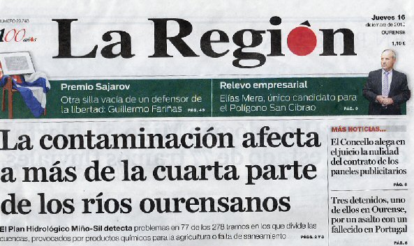 Estos días, decembro do 2010, estase a celebrar en Ourense a presentación do plan hidrolóxico da Confederación Miño Sil que está en fase de información pública. Algunhas noticias que aparecen no diario La Región chámanme un pouco a atención, unhas por esperpénticas como a noticia de que a contaminación do Barbaña se resolverá no 2027; outras noticias sorpréndenme xa que agora veñen, parece, a descubrir a pólvora, cando levamos xa 20 anos cós mismos problemas e algúns berrando dende páxinas web (polo menos 13 anos), blog, etc. que se faga algo, que hai moito chupóctero que non rasca bola arredor dos ríos e estos cada vez están máis porcallentos e envelenados...