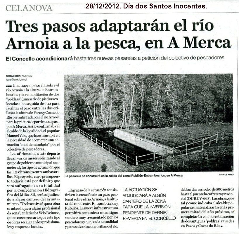 Posteriormente diciembre del 2012 el concello de A Merca a petición de pescadores de la zona? pone en marcha unos pasales.