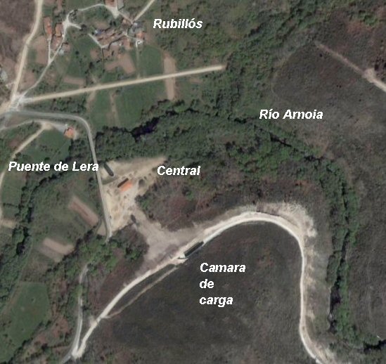 A minicentral de Rubillós foi realizada nun trozo de Canón do Arnoia, 2,80 km que era "Ruta do Arnoia" (na zona aparte de moitos muíños, está o Canal do Ruca así como a casa da Turbina, xunto cunha vexetación e un bosque de Galería que era unha auténtica gozada) . A minicentral está no pobo de Rubillós que pertence A merca. A cola do pequeno encoro pertence a Allariz.