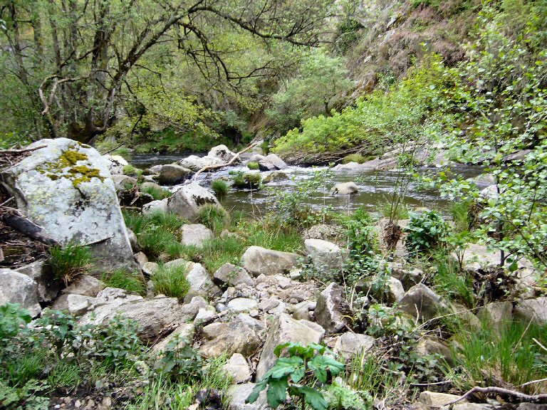| Insisto nas pedras e nas árbores da parte esquerda do río. | |||