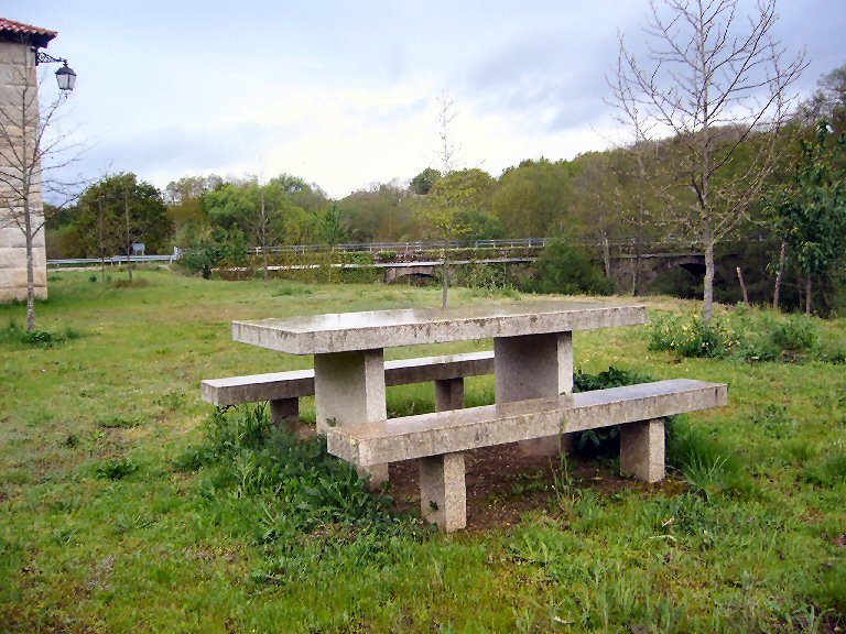 Área recreativa prometida polo Grupo San Miguel, para Rubillós e a zona. O fondo a Ponte de Lera sobre o río Arnoia e a esquerda o edificio de turbinas. A área recreativa non é nada especial, pero os donos da minicentral dicen que todo está revalorizado e que todo son ventaxas para Rubillós e A Merca.