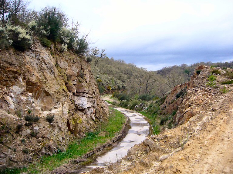 2.- O río desgraciado totalmente en 3 kms.: canle cheo de pedras do desmonte realizado (a estrada - camiño ten sobre 6 metros de ancha e a montaña tuvo que ser voada a base de dinamita en todos os seus tramos) . Terrapléns falsos, non asentados inda hoxe despois de seis anos, cheos de pedras colocadas o azar producto do desmonte.