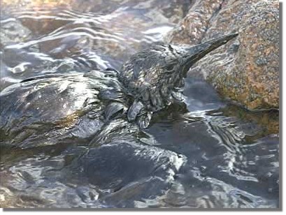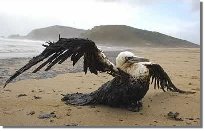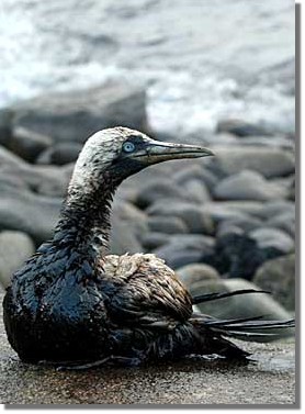 Ave impregnada de fuel. Hay miles de aves afectadas. |