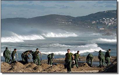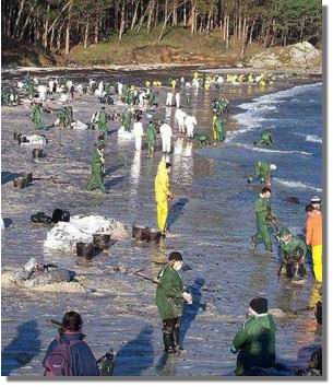 A todos ellos muchas gracias, sois nuestra esperanza y nuestro futuro, dentro del desastre y la desgracia de Galicia. Este hecho es para mí lo único positivo de esta auténtica desgracia. ¡¡Muchas gracias a todos los que, voluntariamente, venias ayudar a limpiar nuestra costas!!. Por supuesto, en primer lugar, a los gallegos que salisteis a las cabeceras de las rías a luchar, muchas veces a mano, con el fuel...mi mayor reconocimiento. Realmente nos sentimos orgullosos de vosotros. En segundo lugar a los gallegos y no gallegos que ayudais a limpiar la costa. Nuevamente muchas gracias. Realmente con vuestro esfuerzo cívico estais supliendo la ausencia de poder político que sentimos los gallegos. Lo anterior es lo único positivo de esta tragedia.