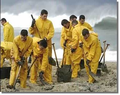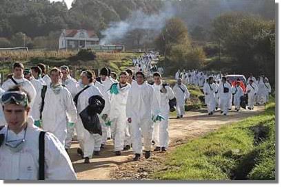 La esperanza: en Galicia aparecen miles de voluntarios, de todas las partes de España y del mundo para echar una mano , en la limpieza de las playas y acantilados.