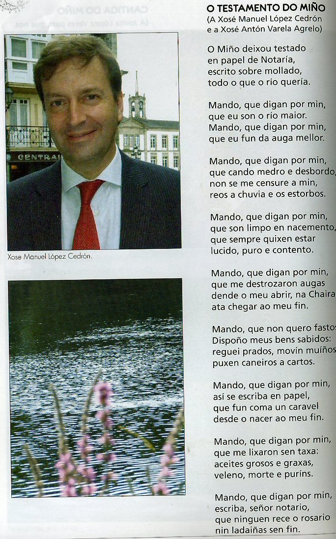 poesía "O Testamento do Miño", pero ben poidera poñer