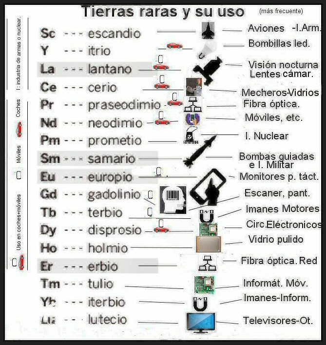 a cada tierra rara puede verse para que se utilizan actualmente.