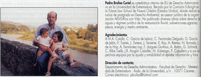 Para rematar este pequeño resumen resaltar el último punto tratado por Pedro Brufao en su artículo: "...Armas legales para restaurar los ríos. Uno de los objetivos principales de la demolición de presas es acabar con el mito de la obra hidráulica como redentora de penurias. Como toda obra, es un instrumento para lograr un fin determinado y, llegado el momento, ya sea porfu impacto social, económico o ambiental hay que eliminarla Si se desmantelan vías de ferrocarril, edificios o carreteras, ¿por qué las presas deben considerarse monumentos para la posteridad? . Aunque hasta la fecha son más los proyectos que las_realidades, contamos con el respaldo legal de la Directiva Marco del Agua, las ayudas agroambientales, la necesaria eliminación de las subvenciones agrarias de la PAC la normativa sobre Protección Civil y la reactivación de la Comisión de Seguridad de Presas. Hay que tener en cuenta que la vida de una gran presa gira en torno a los cincuenta años, por lo que pronto habrá que tomar decisiones determinantes para el futuro de nuestros ríos.. En cuanto a la caducidad de las concesiones los organismos de cuenca deberían incluir una cláusula que obligara a eliminar la obra con cargo al concesionario y a blindar jurídicamente nuestros ríos, a semejanza de losWild & Scenic Rivers de Estados Unidos. Para terminar, sin dinero no hay política alguna, por lo que ya va siendo hora de que el canon del agua y los ingentes presupuestos de las confederaciones hidrográficas y otras administraciones, destinados a llenar de homigón nuestros ríos, destinen por fin a recuperarlos. Hay que dejar esa calderilla destinada a poner parches ambientales tras el paso, por ríos y despachos, de la maquinaria pesada de la vieja incultura del agua..." ----------------------------------