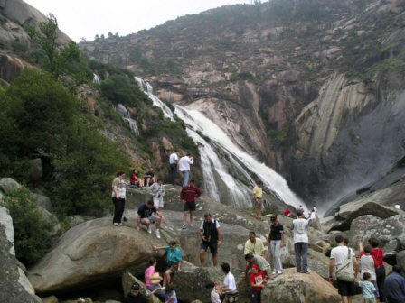 A vista de pájaro la central que produce el desaguisado de la derecha. Es de la empresa Ferroatlántica. Está en Ézaro (La Coruña). Cascada de Ézaro (La Coruña). Fotografía sacada un domingo, a las 12:30, por el autor de la WWW, el resto de la semana está seca. Una vergüenza auténtica.