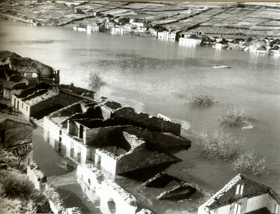 A misma fotografía xa co río Miño prisioneiro. 1962 Hoxe prisioneiro... Hoxe está a apodrecer en lamazais.