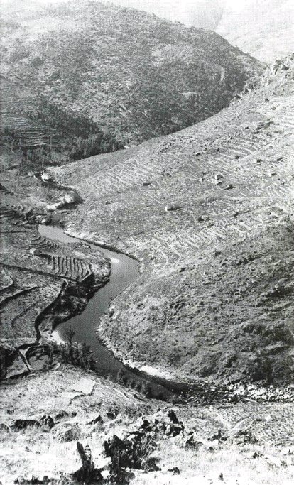Sensacional imagen del río Bibey por debajo de las Ermitas cerca de Soutipedre y Ribadepó , desde el camino de Lentellais a Chandoiro. ¡¡ Ya llovió. Fotografía de Sta. Maria del Villar. Hace ya muchos años.